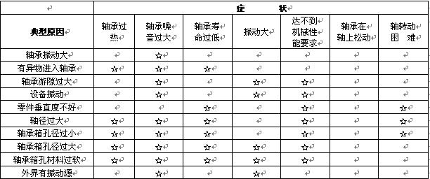 軸承各種異常的原因及處理方法軸承在使用中可能會出現(xiàn)多種異常狀況,其原因可參考下表:處理方法軸承振動大原因:機(jī)器中的轉(zhuǎn)動件與靜止件接觸。方法:仔細(xì)檢查機(jī)器中的每一個(gè)轉(zhuǎn)動件,避免發(fā)生接觸。圖:有異物進(jìn)入軸...